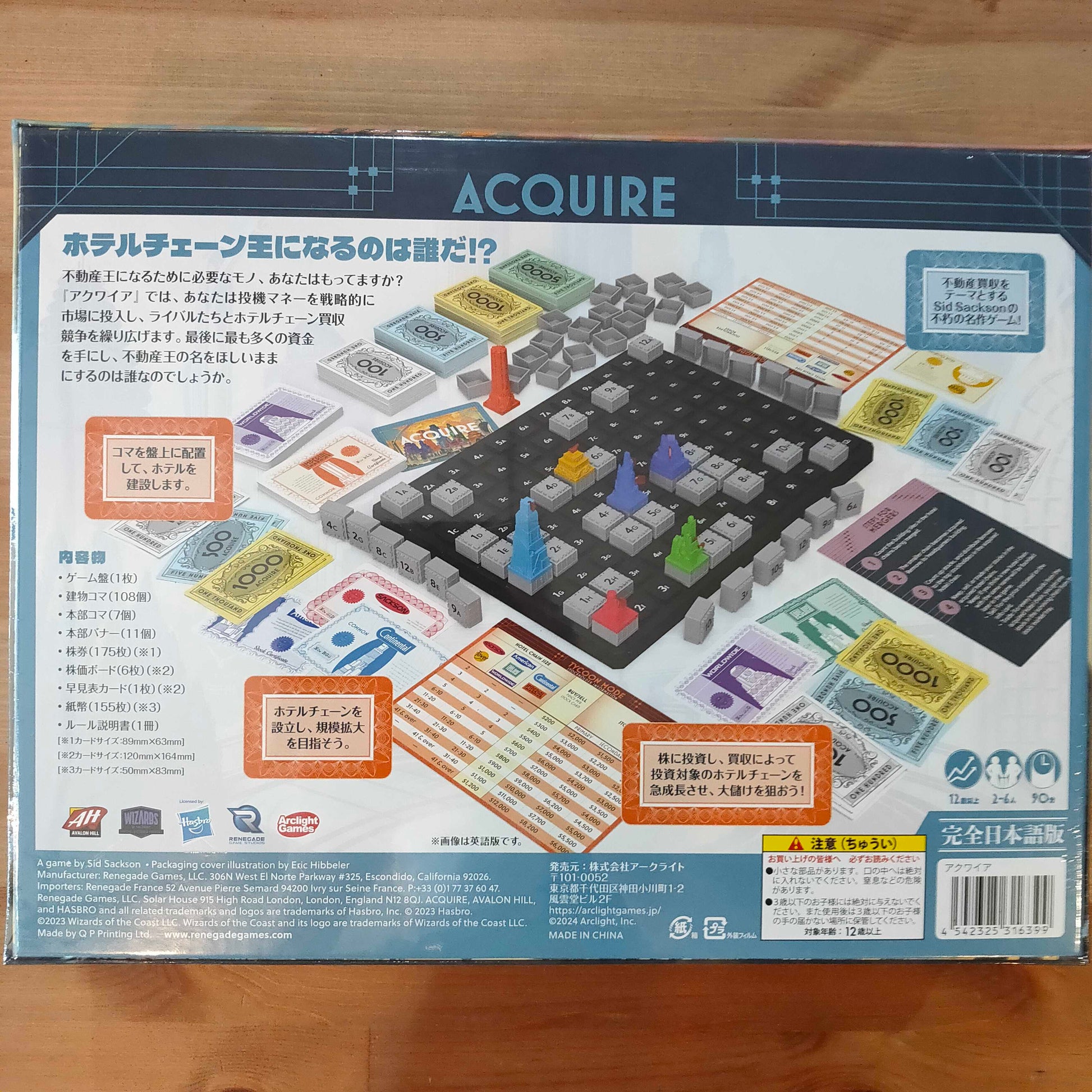 『アクワイア』は1960年代より各社で発売され、時にルールをマイナーチェンジしながら、現在まで親しまれている古典的な不動産買収ゲームです。最新作である本作では、ボードやコマがプラスチック製の豪華仕様となっており、「タイクーンモード」と「クラシックモード」の2つのゲームモードを楽しめ、2人プレイにも対応しています。