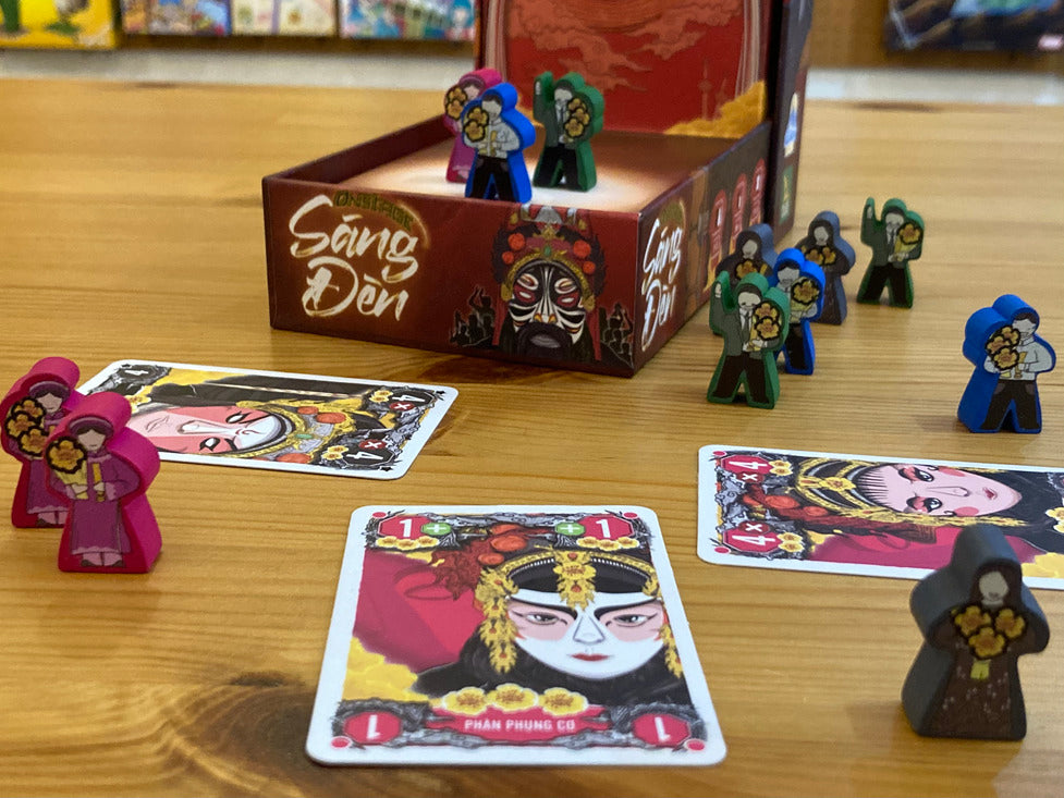 「オンステージ」は2024年にMichael Orion氏によってゲームデザインされたトリックテイキング系のボードゲームです。 ベトナムの伝統的な演劇「ハット・ボイ」をテーマにした作品になります。