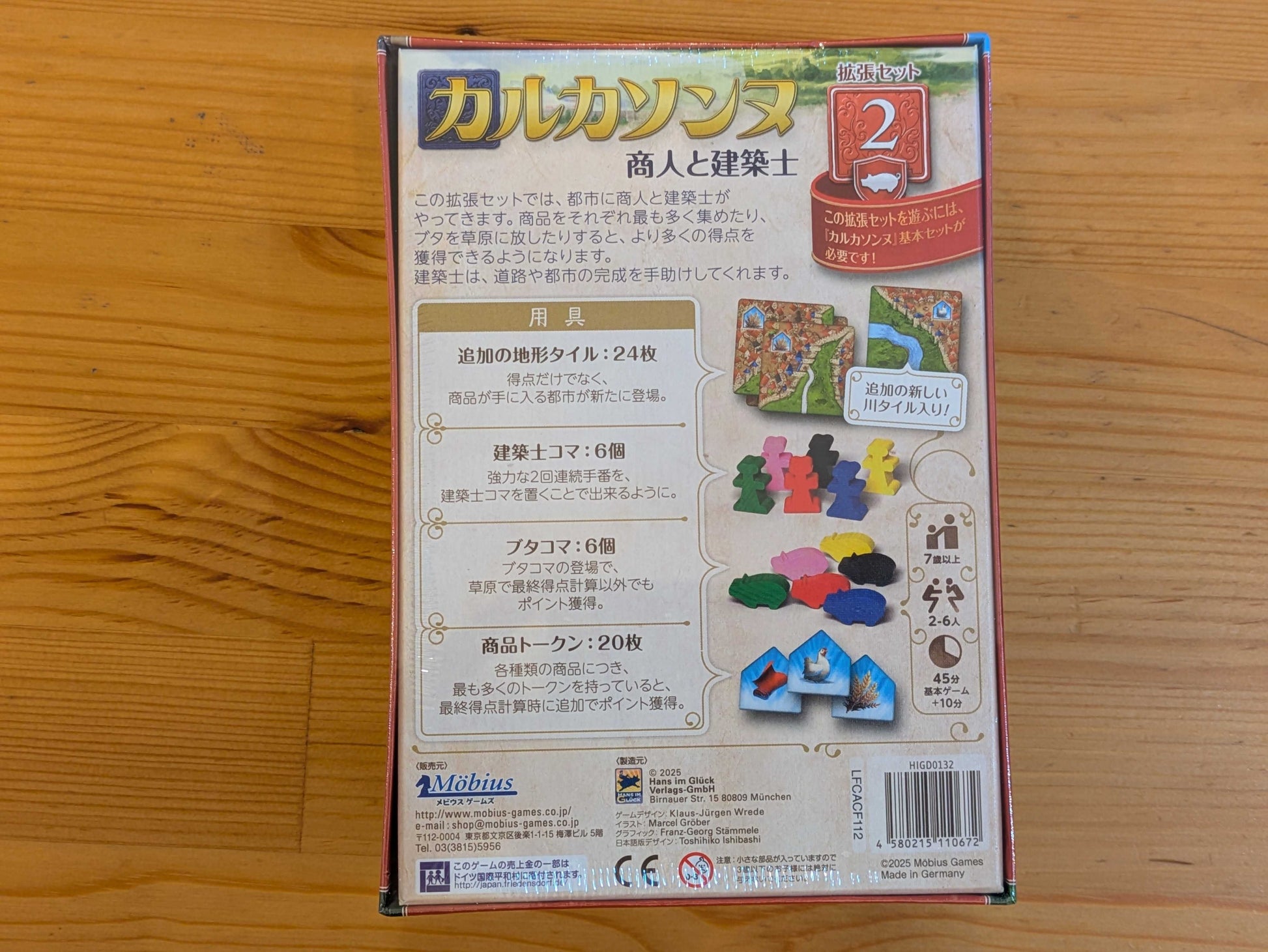 この拡張には、20枚のタイルが含まれており、商人が都市に商品を売りにきたり、建築士が道路や都市の建設をサポートしてくれます。
