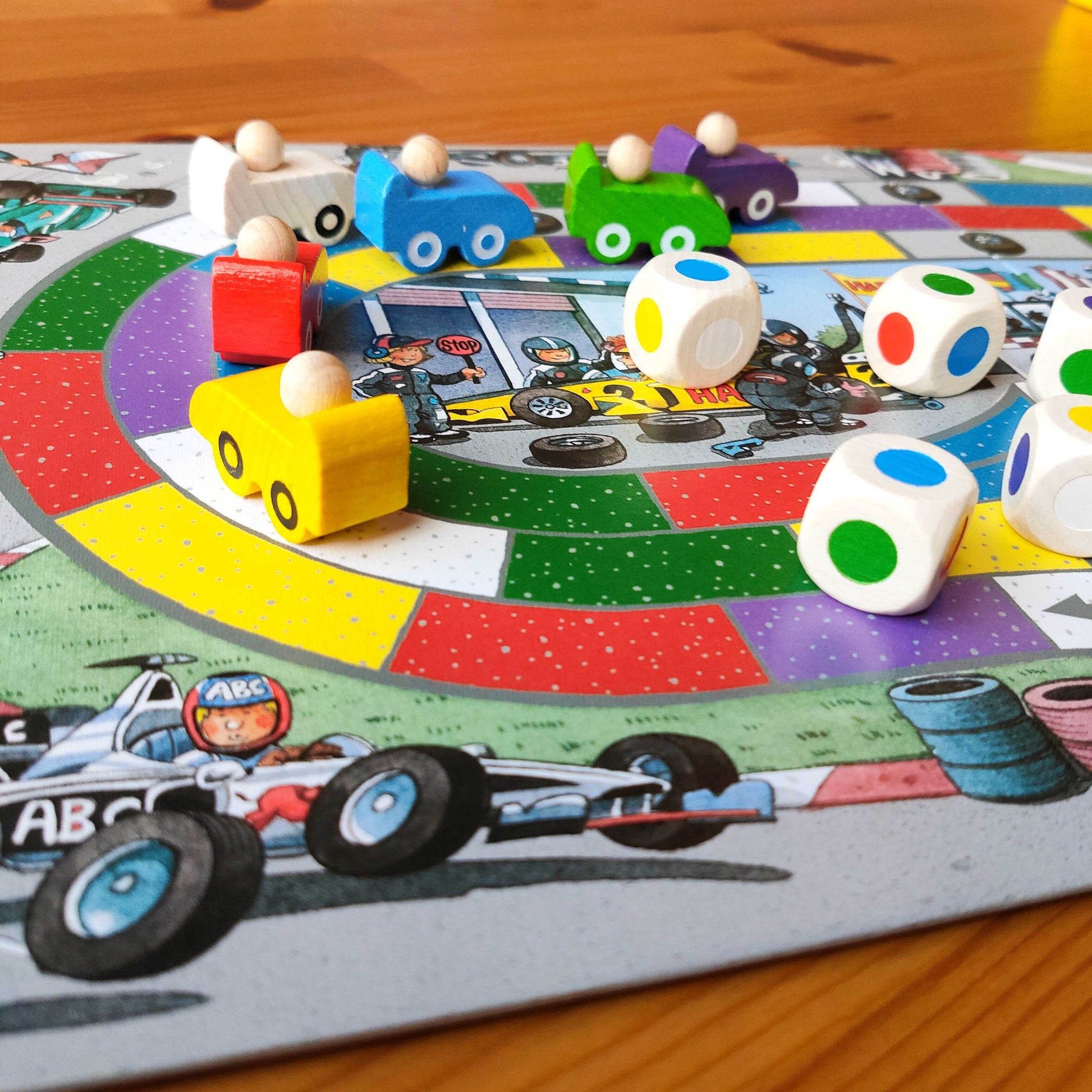 HABAグランプリの開催です。進め方は6個のサイコロのみぞ知る、運試しのカーレース。