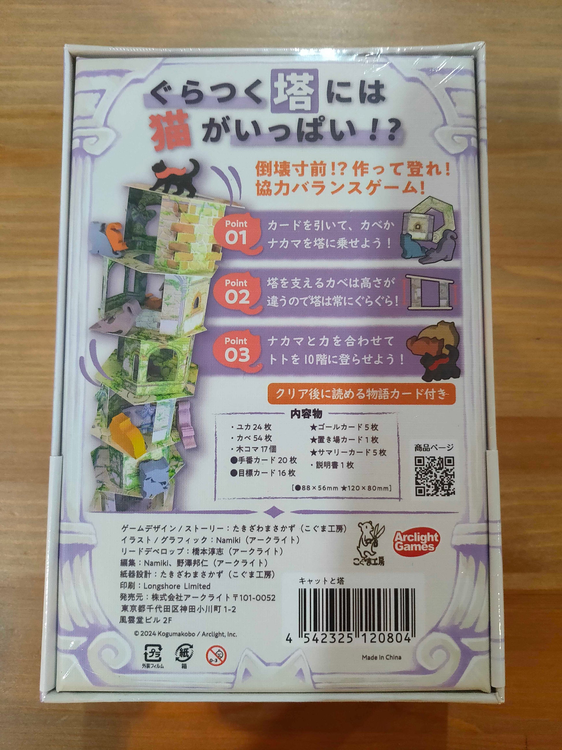 『キャットと塔』は、黒猫の「トト」を塔の上へと登らせる協力バランスゲームです。