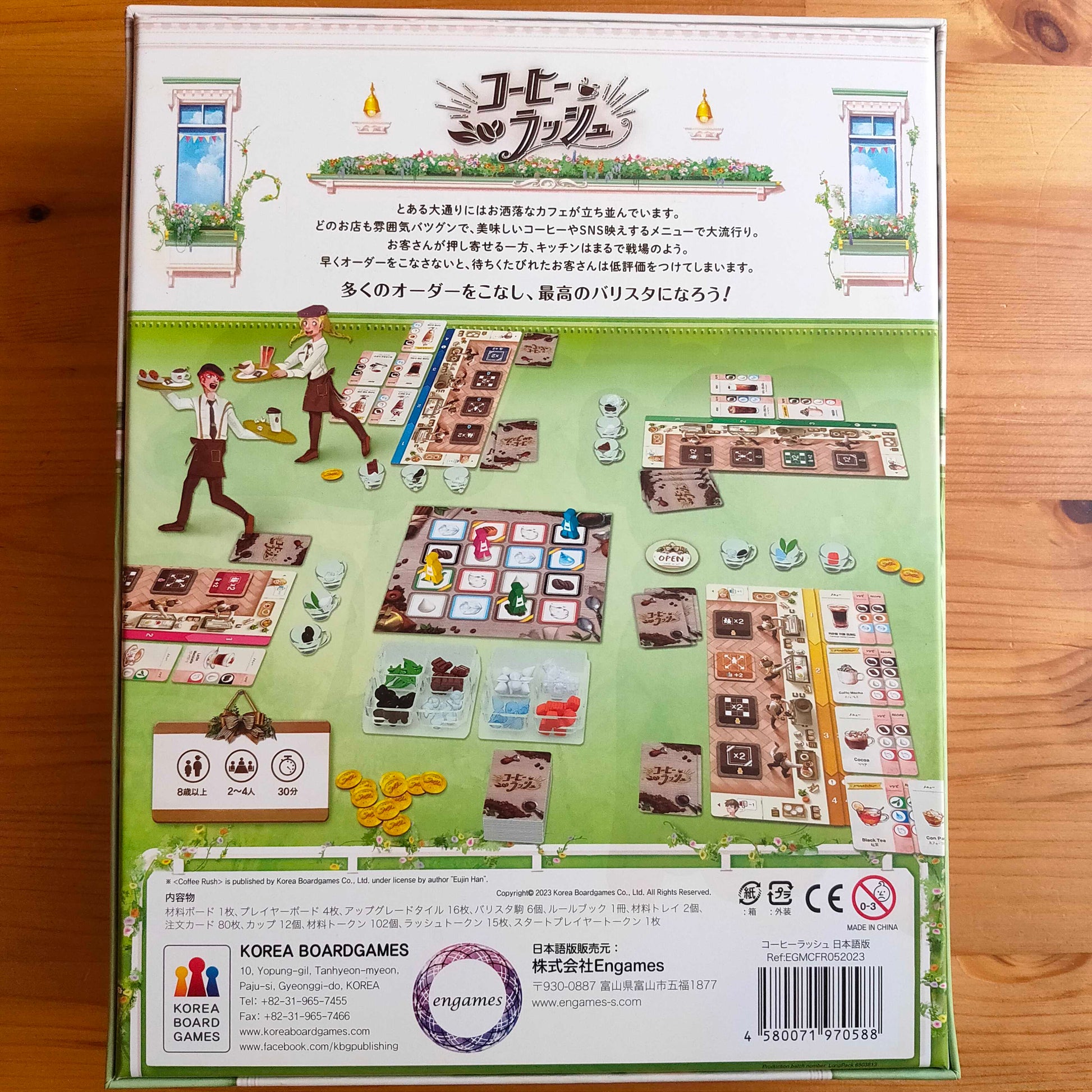 『コーヒーラッシュ』は、大人気コーヒーショップのバリスタとなり、次々と来る注文を捌かなければいけない、「地獄のコーヒーショップ体験型ボードゲーム」です。