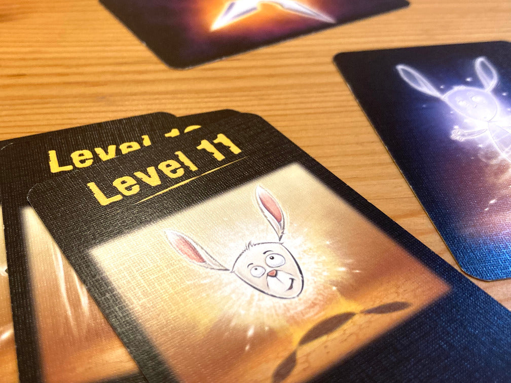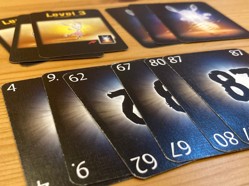 プレイヤーはラウンド(レベル)ごとに指定された枚数の手札を、カードの番号が昇順になるように捨て山にプレイしていきます。このゲームではプレイヤー間をめぐる手番が一定ではなく、「いま手札を出したい」と思ったプレイヤーが手番を行います。そのとき、だれがいつ手番を行うかということについて相談してはなりません。各プレイヤーが第六感を研ぎ澄まし、全員が手札を正しい順でプレイしきると見事そのレベルをクリアとなり、次のレベルへと進みます。クリアするためには手札を出す前に集中することが重要となるでしょう。