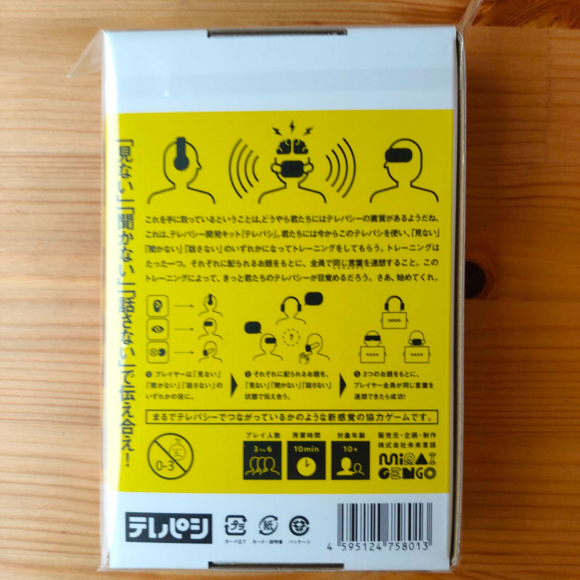 これを手に取っているということは、どうやら君たちにはテレパシーの素質があるようだね。これは、テレパシー開発キット『テレパシ』。君たちには今からこのテレパシを使い、「見ない」「聞かない」「話さない」のいずれかになってトレーニングをしてもらう。トレーニングはたった一つ。それぞれに配られる3つのお題をもとに、全員で同じ言葉を連想すること。このトレーニングによって、きっと君たちのテレパシーが目覚めるだろう。さあ、始めてくれ。
