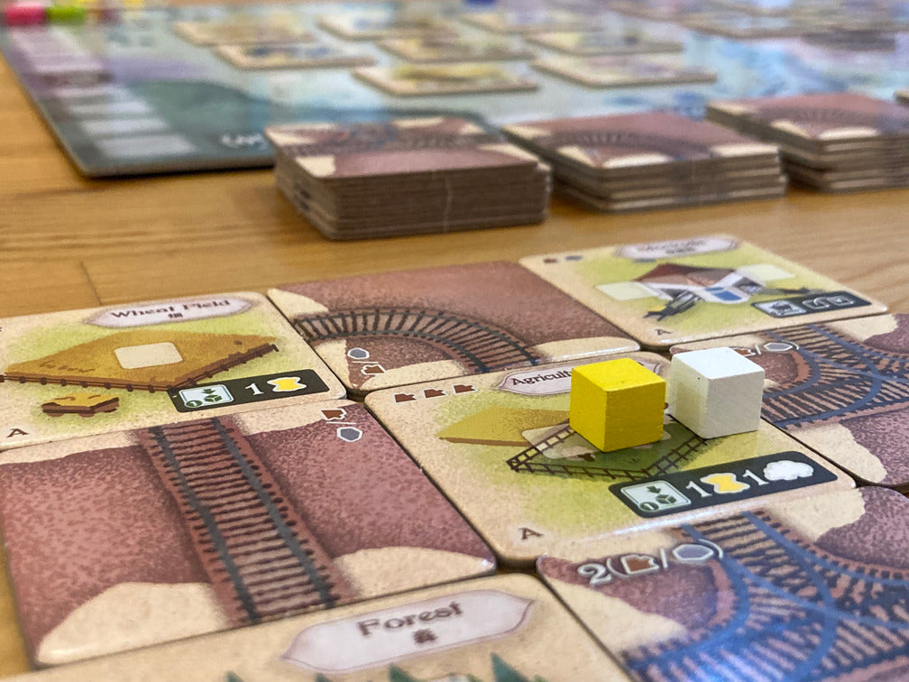 「トロッコタウン」は、自分の街を発展させていくタイル配置ゲームです。