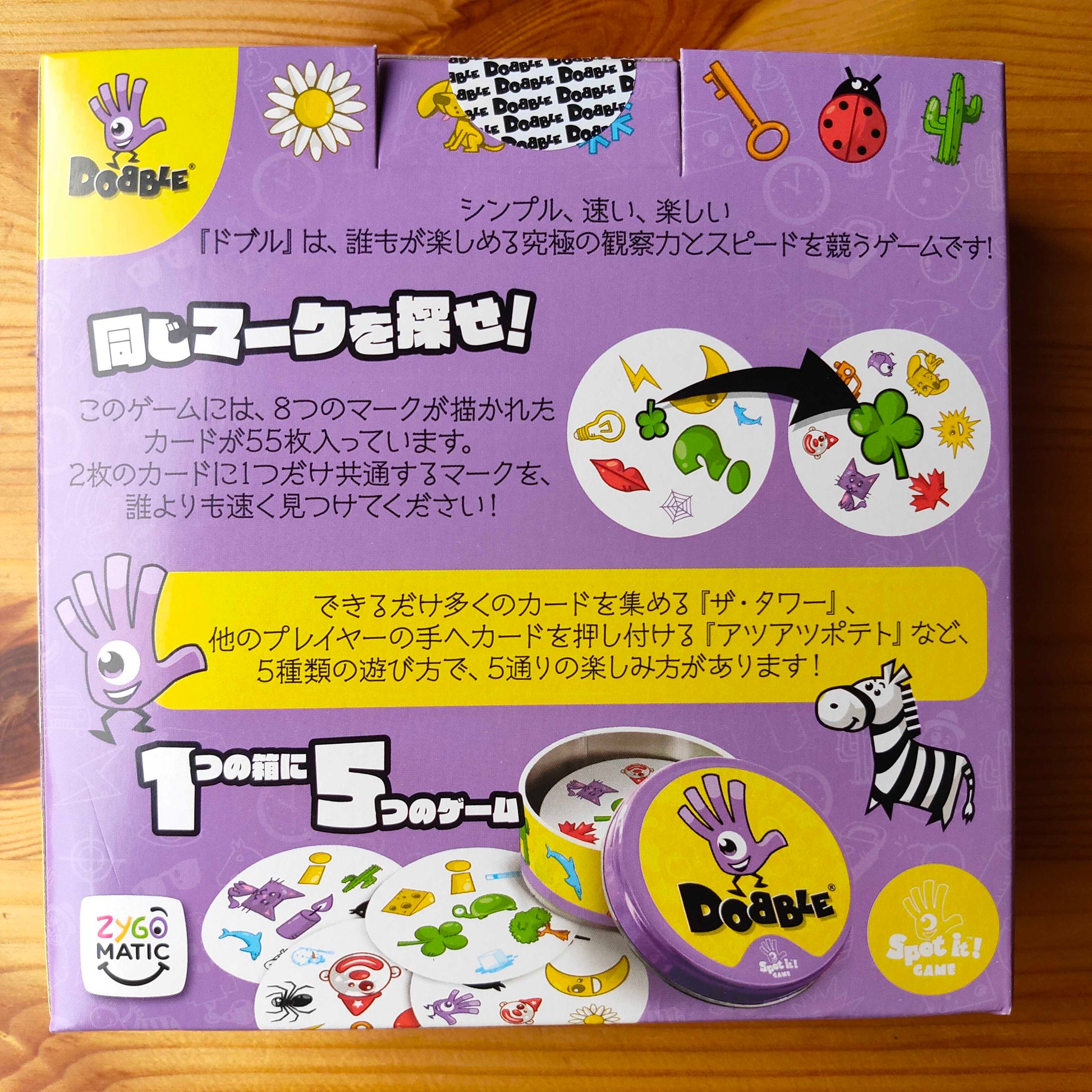 ドブルは、それぞれに50種類以上のマークの内から8つが描かれた55枚のカードで遊ぶゲームです。全てのカードは他のカードとたった1つだけ共通するマークが描かれており、それを探すことがゲームの目的です。