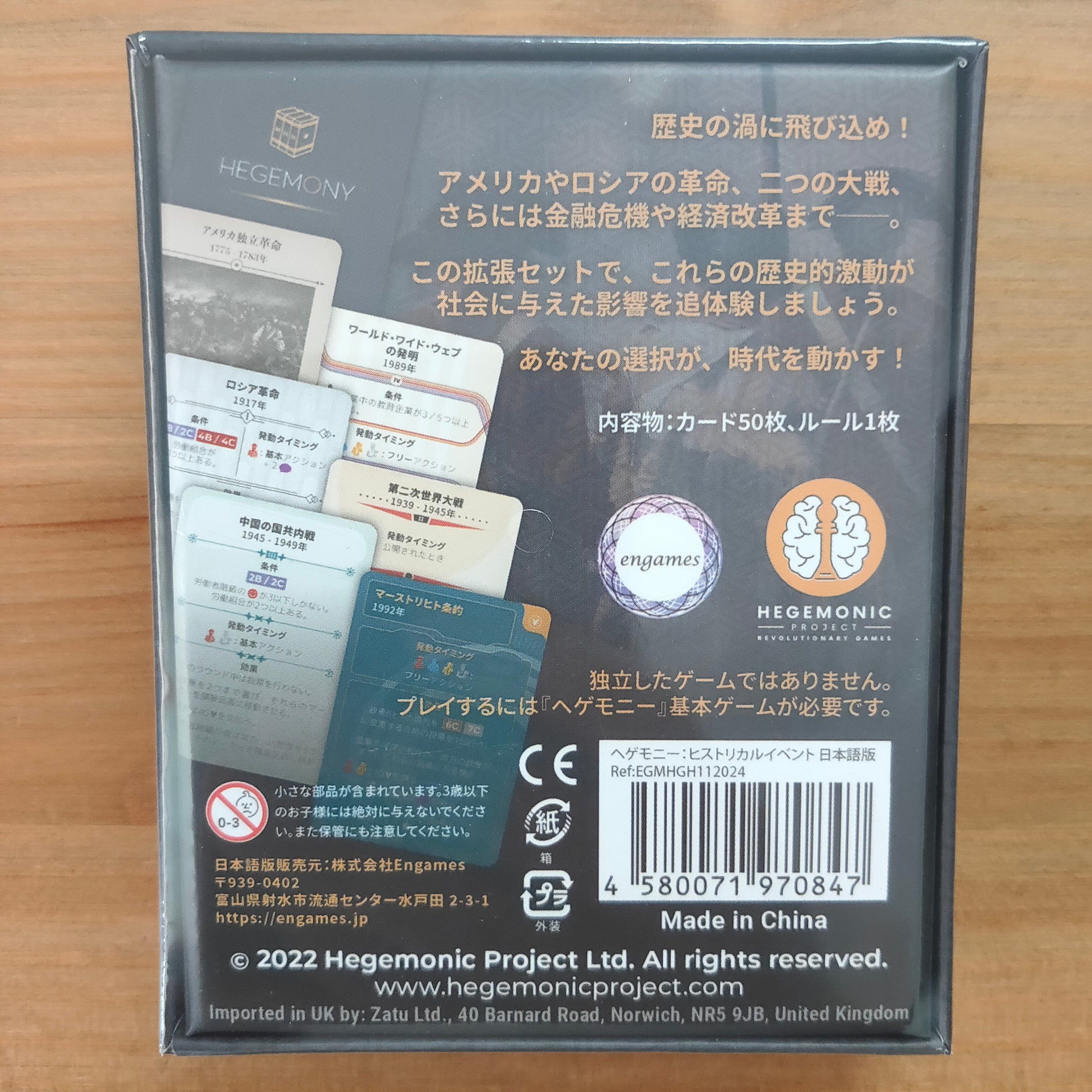 ヘゲモニー:ヒストリカルイベントは、ヘゲモニーを史実ともに味わえる拡張カードです。