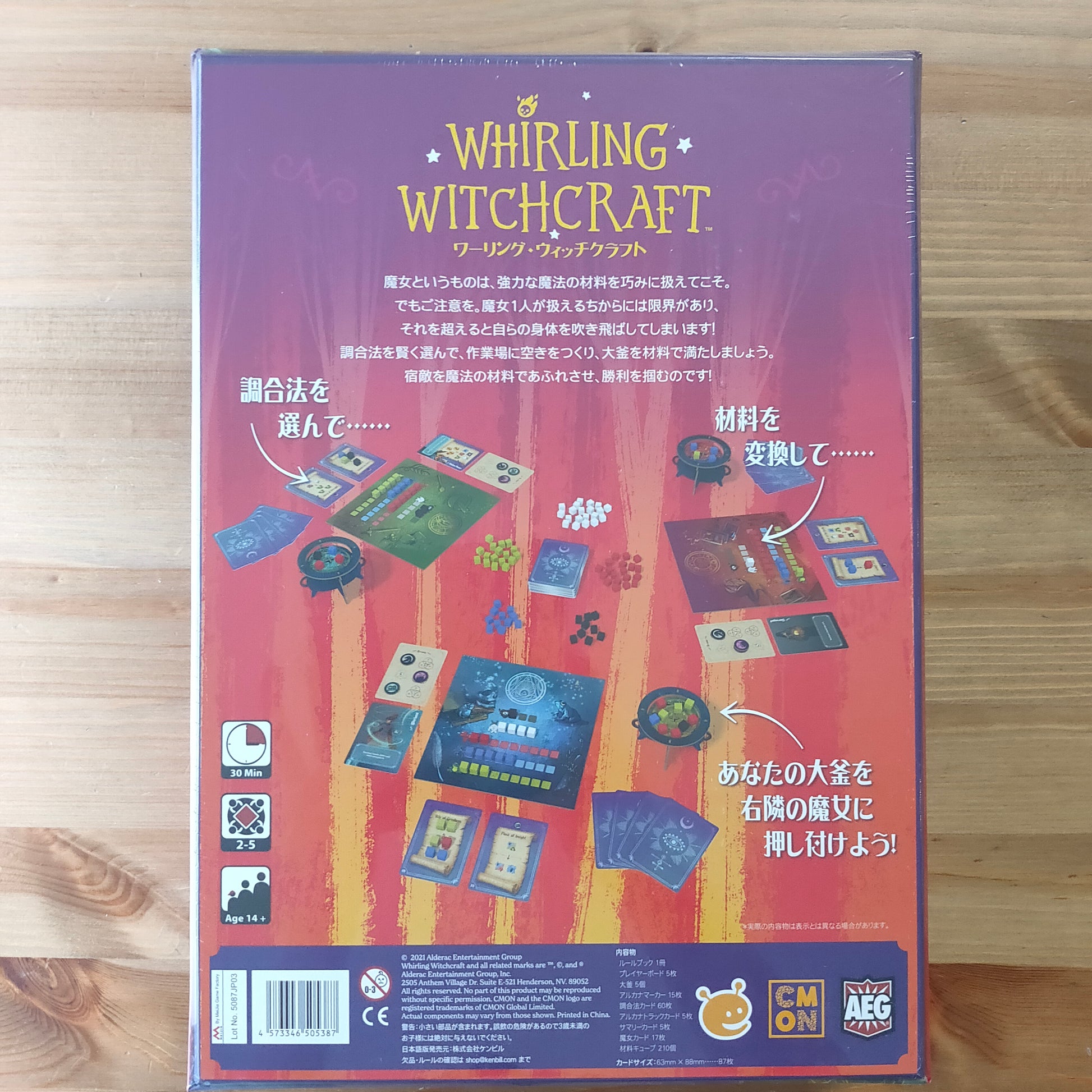 大鍋に向かう魔女たち。ドラフトしたカードで魔法の材料を生成!できた材料は自分のモノ・・・ではなく、右隣の魔女に押し付ける!?プレイヤーたちは魔女となり、カードをドラフトしながら魔法の材料を別の材料へと変換していきます。変換した材料は自分で保持する…のではなく右隣の魔女の持ち物に! これを繰り返し、右隣の魔女の所持上限から材料を溢れさせることで得点していきます。他に例のない斬新な発想で、国内でも大きな注目を集めている本作。ゲーム後「もう1回!」の声が絶対飛び出す、最高の30分ゲームがついに日本上陸です!