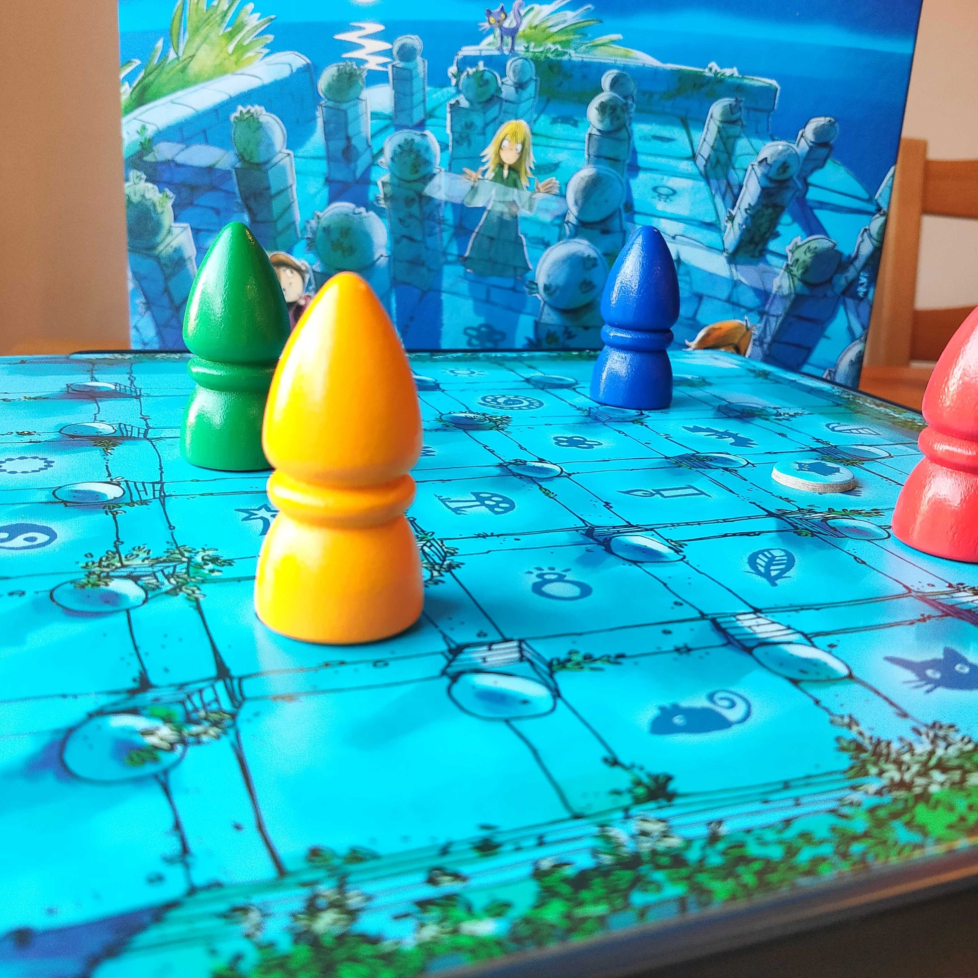 ボード上の各マスには魔法の印が描かれています。各プレーヤーのコマは4つの隅のいずれかに置きます。この時プレーヤーのコマの下には磁石で鉄の球が付いています。