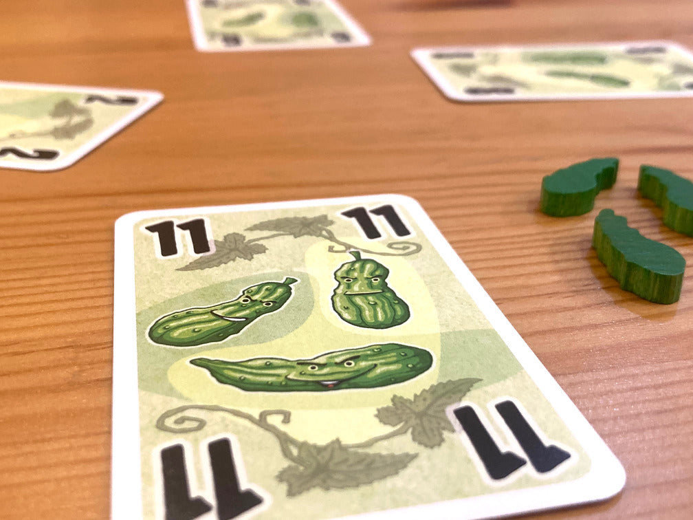 7回のトリックで1回のラウンドとなり、複数回のラウンドを繰り返し、勝者を決めていきます。1?15の数字が書かれたカードを7枚ずつ配り、1トリックに1枚ずつ出していきます。最も大きい数字のカードを出した人の勝ち!ただし!!7回目のトリックに勝ってしまうと、キュウリを受け取らなくてはならないのです。6本以上のキュウリを受け取ったプレイヤーは「お漬物」と呼ばれ、そのゲームから脱落します。つまり、手元に持っていられるキュウリは5本までなのです!7回のトリックで1回のラウンドとなり、複数回のラウンドを繰り返し、勝者を決めていきます。