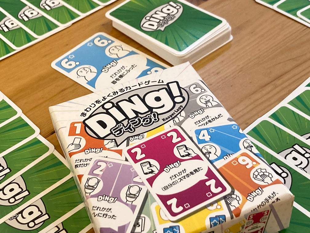 多種多様な条件で「ディング!」が飛び交い、1回のプレイ時間も短く、家族や友達と何回でも楽しめるパーティーゲームです。