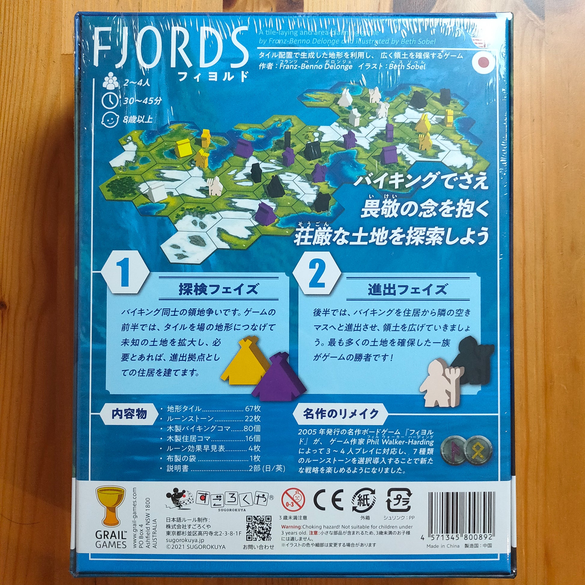 前半で地形タイルを共通の場に矛盾がないように配置してフィヨルド状の地形を広げつつ拠点を確保し、後半でその拠点から陣地を広げ、より多くの領土を確保するゲームです。