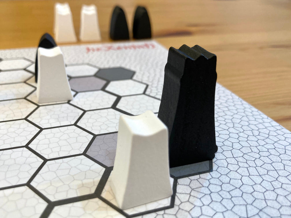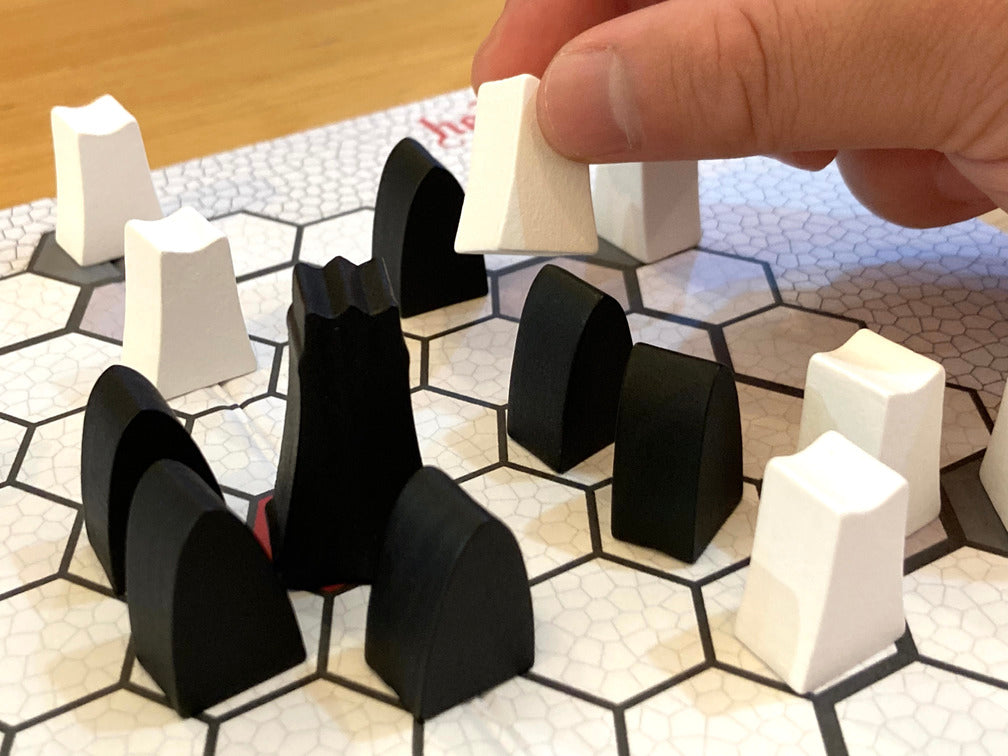 ヴァイキングが遊んでいたと言われる中世の「ネファタフル」が、Nexus Gamesのケヴィン・ケインによって、六角形ボードを使用する現代のゲームとして蘇りました。白・黒を交互に担当してプレイするのがおすすめです。
