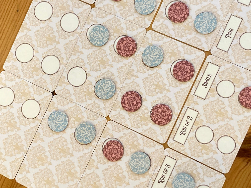 大富豪っぽいことをしながら、コネクトフォー(4目並べ)をします。出した役に対応する列にチップが置けるのですが、現状の手札の強さや場の状況を鑑みての先読みが重要です。短時間で濃密な駆け引きをしたい人におすすめです。