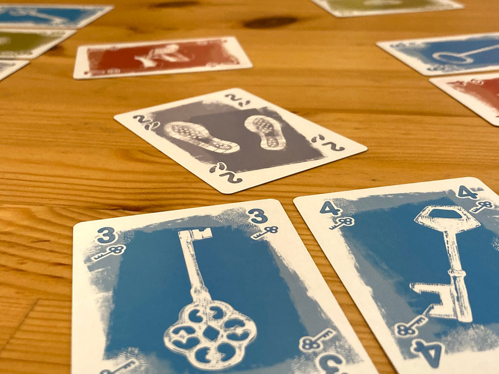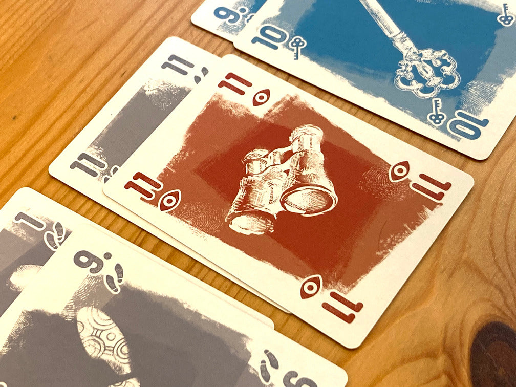 計画通りに適切な色や数字でトリックに勝利すれば、計画の「証拠」を隠蔽して得点を獲得できます。しかし、証拠を隠しきれなかったり、計画外の余計なトリックを取ってしまうと、犯行の「計画の綻び」として失点してしまいます。
