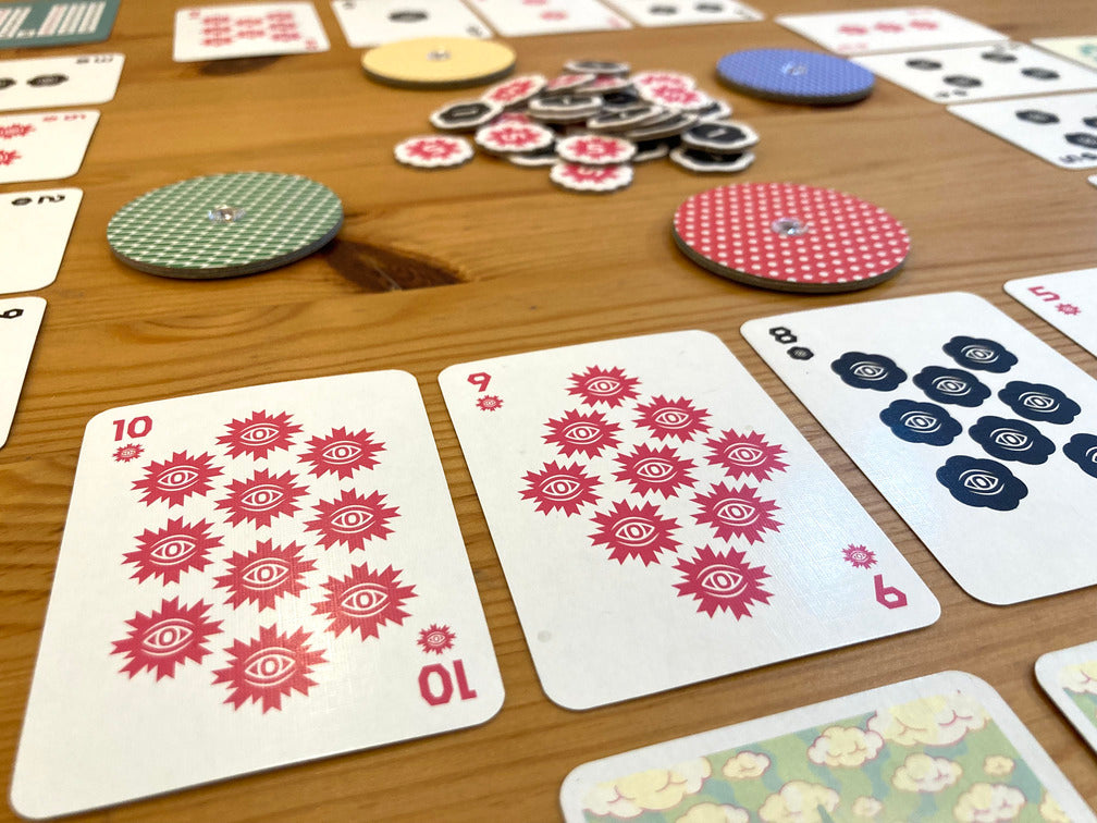 いきなりクライマックス!トランプの半分26枚で遊ぶ大富豪系カードゲーム手札は6枚、うち4枚が公開。手札がほとんど見えてることで、また総枚数が少ないことで展開が予想できたりできなかったりを楽しめる