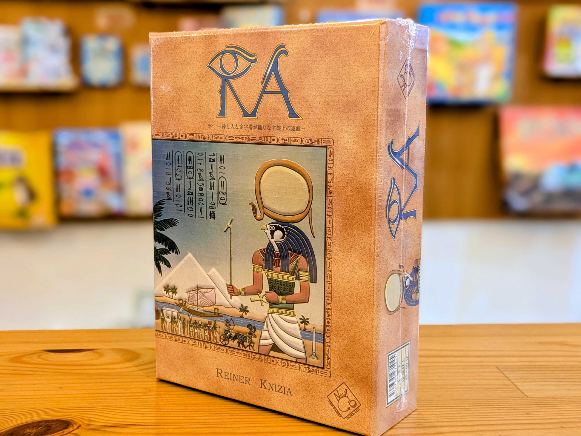 ラーは古代エジプトの文明の興隆をテーマとしたオークションゲームです。巨匠ライナー・クニツィアの数多くの作品の中でも特に目覚ましい評価を受けた傑作中の傑作で、把握しやすいルールと60分のプレイ時間のうちにボードゲームの駆け引きの面白さ・悩ましさが存分に詰め込まれています。