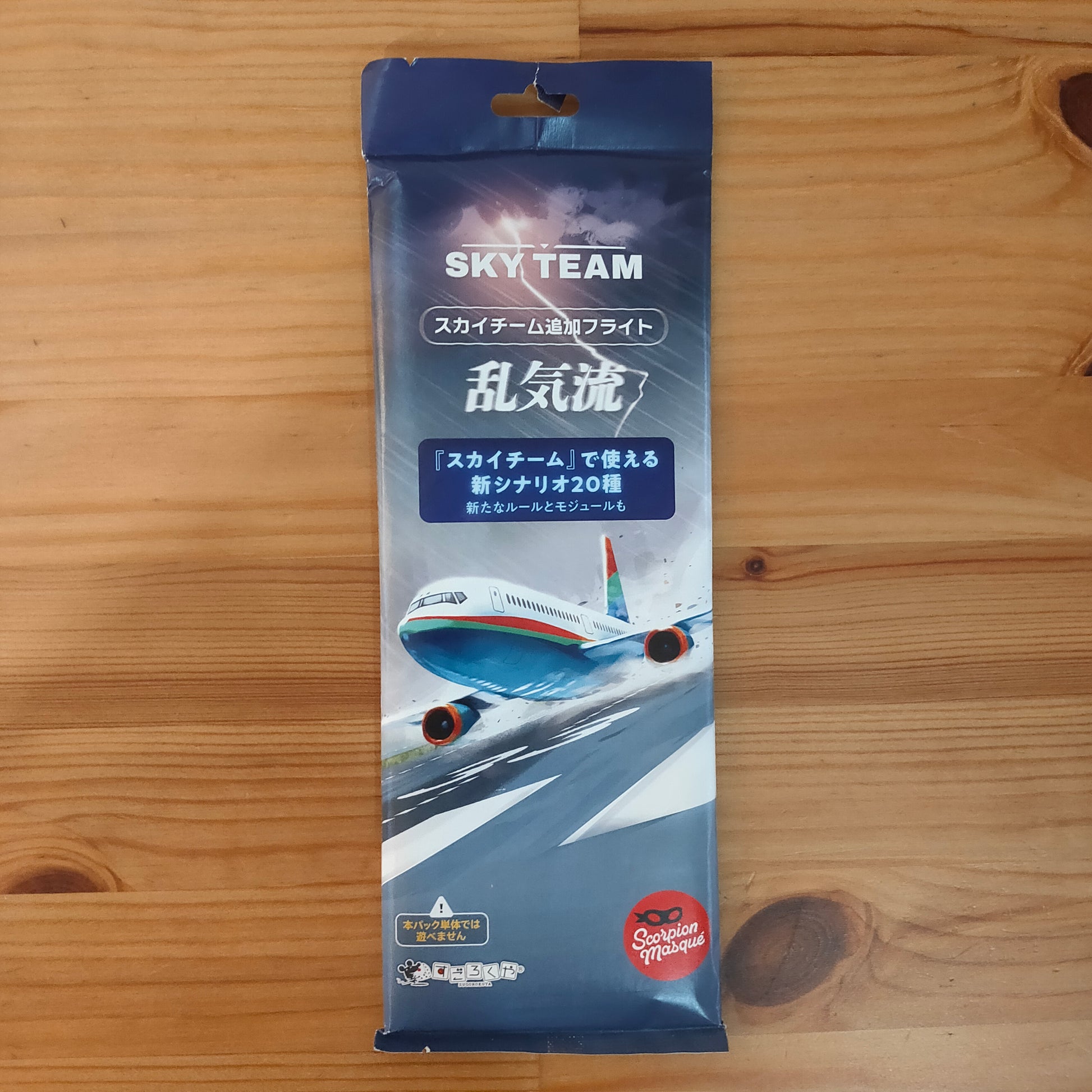 『スカイチーム追加フライト:乱気流』は、暗黙の連携で機体を操り、着陸を目指す2人専用協力ゲーム『スカイチーム』に、先の見通しが立たなくなる乱気流・視界不良ルールや新たなミッションを加える、追加内容物セットです。
