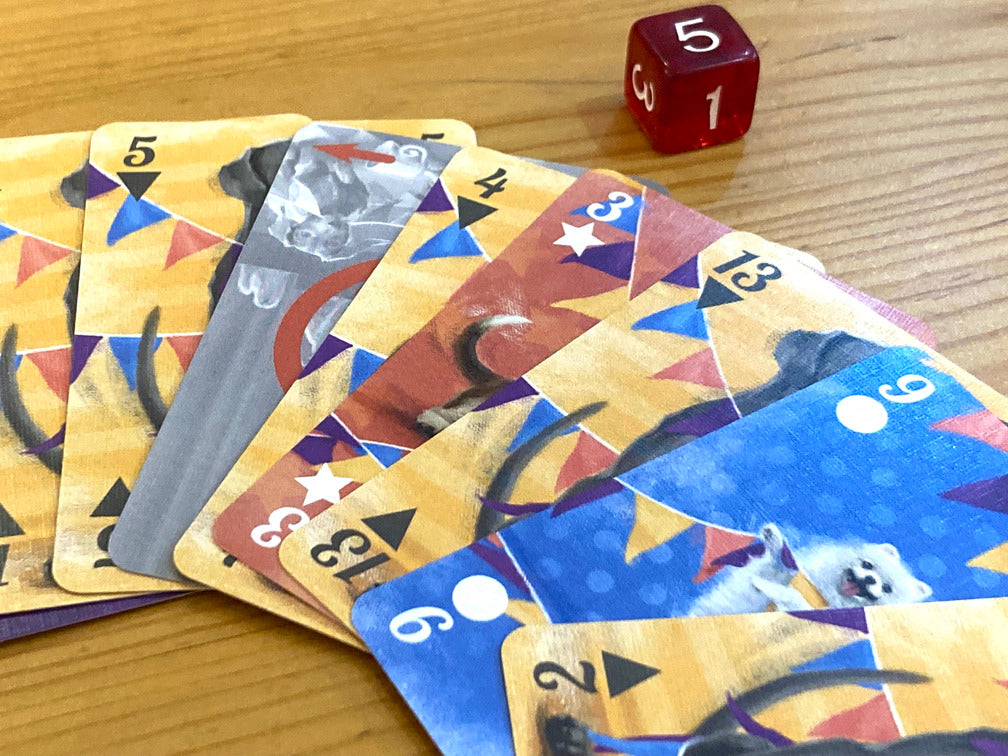 さらに、右側のカードを出し切った順番によって追加得点を得られます。(出し切れなければペナルティ!)